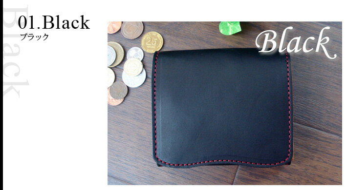 栃木レザー バイカラー 二つ折りウォレット BLK(01) 0107A
