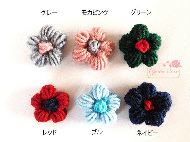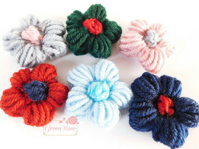 【ゆうパケット可】ハンドメイド用 手編みモチーフ 毛糸フラワー 全6色 4個/花/コサージュ/カチューシャ/ヘアアクセ/ストールピン/材料/資材/副資材/パーツ/リメイク/ラッピング/motif392