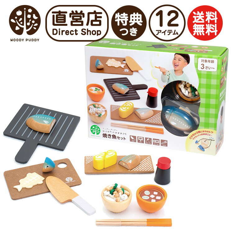 【ウッディプッディ公式直営店】 はじめてのおままごと 焼き魚セット(特典つき)【WOODYPUDDY 木製 食器 マグネット 野菜 ウッディプッディ 食材 おままごとセット 知育玩具 キッチン 子供 】